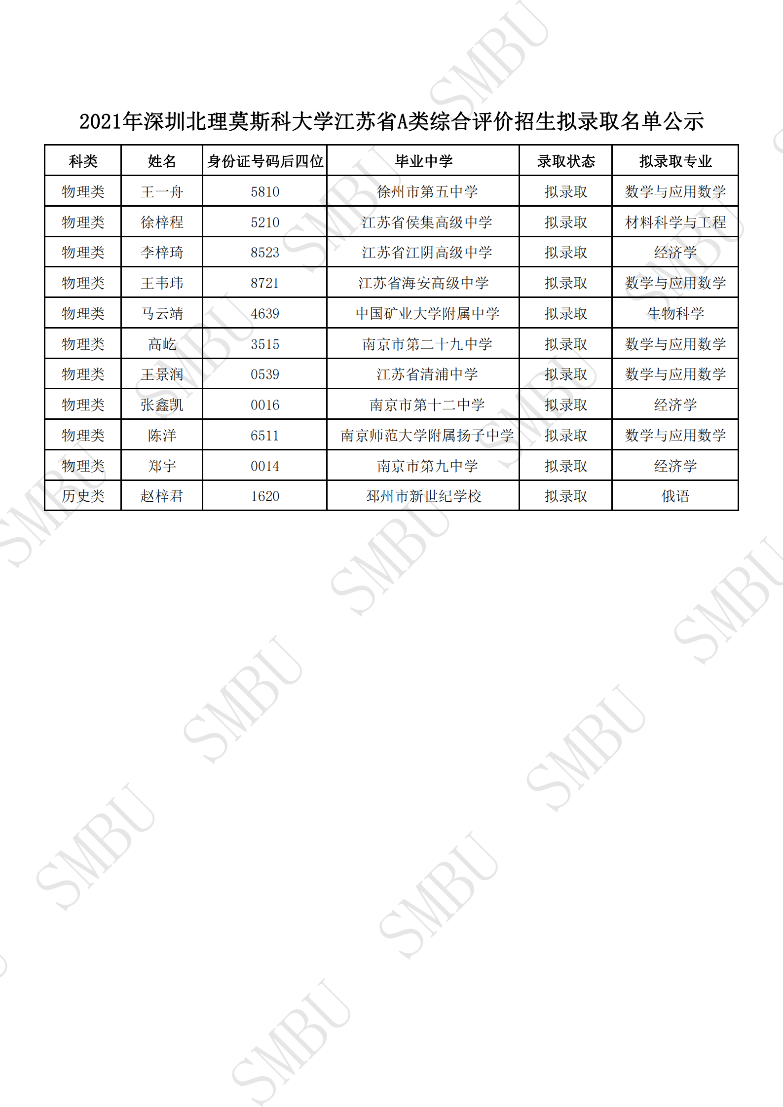 现将我校2021年江苏省A类综合评价招生拟录取名单予以公示(公示期为6月29日-7月1日)。